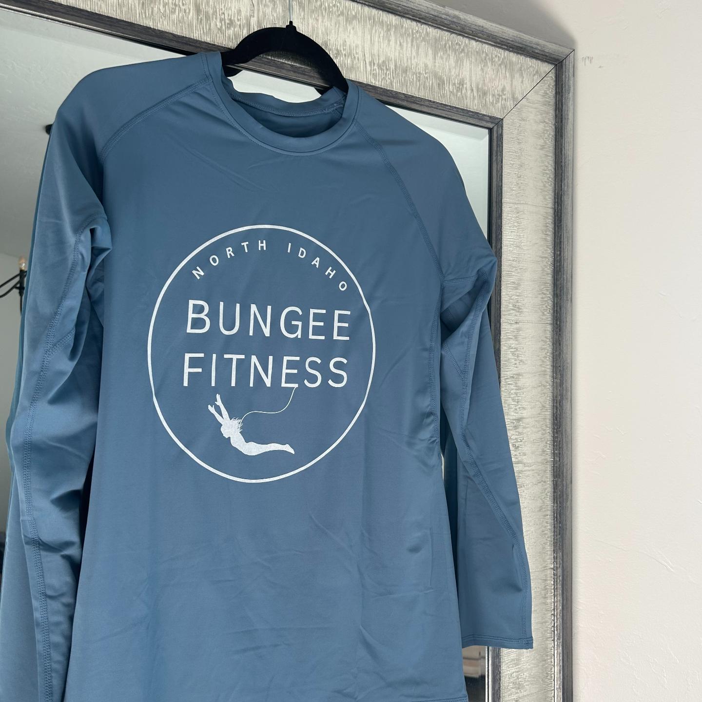 Long sleeve bungee shirts with saying "Squeeze Your Butt!"